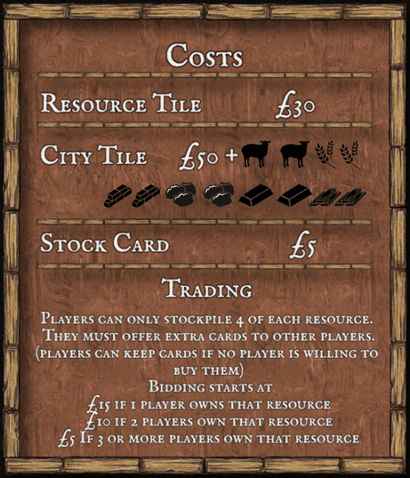Another change was a quality-of-life change with the addition of the Costs Card. All testers found keeping track of what cost what, as well as the starting costs for trades was a little too much to remember without having to ask.