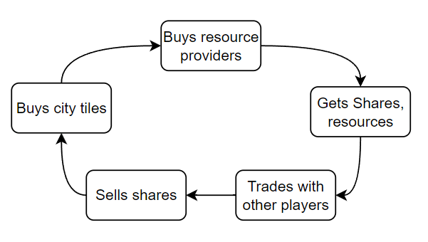 The game takes inspiration from a number of other games, Catan [Mayfair Games 1995], Offworld trading company [Mohawk Games 2016], and Stocks & Shares [Pepys 1957].