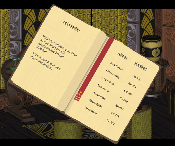The game takes inspiration from Papers Please [Lucas Pope 2014] a game that is set in an immigration office. Proposition Sim 2000 is very small in its scale taking place in one room with the phone and phone book being the way the player communicates with other NPCs.