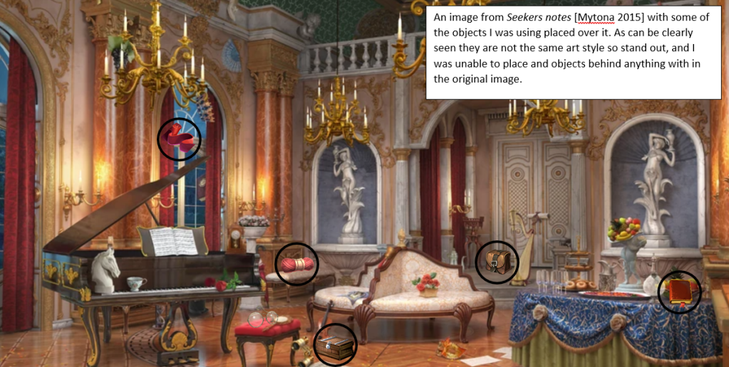 To make it work it ideally needed an artist to make the individual assets to ensure that the objects that were hidden were of the same art style and blended well within the overall picture.